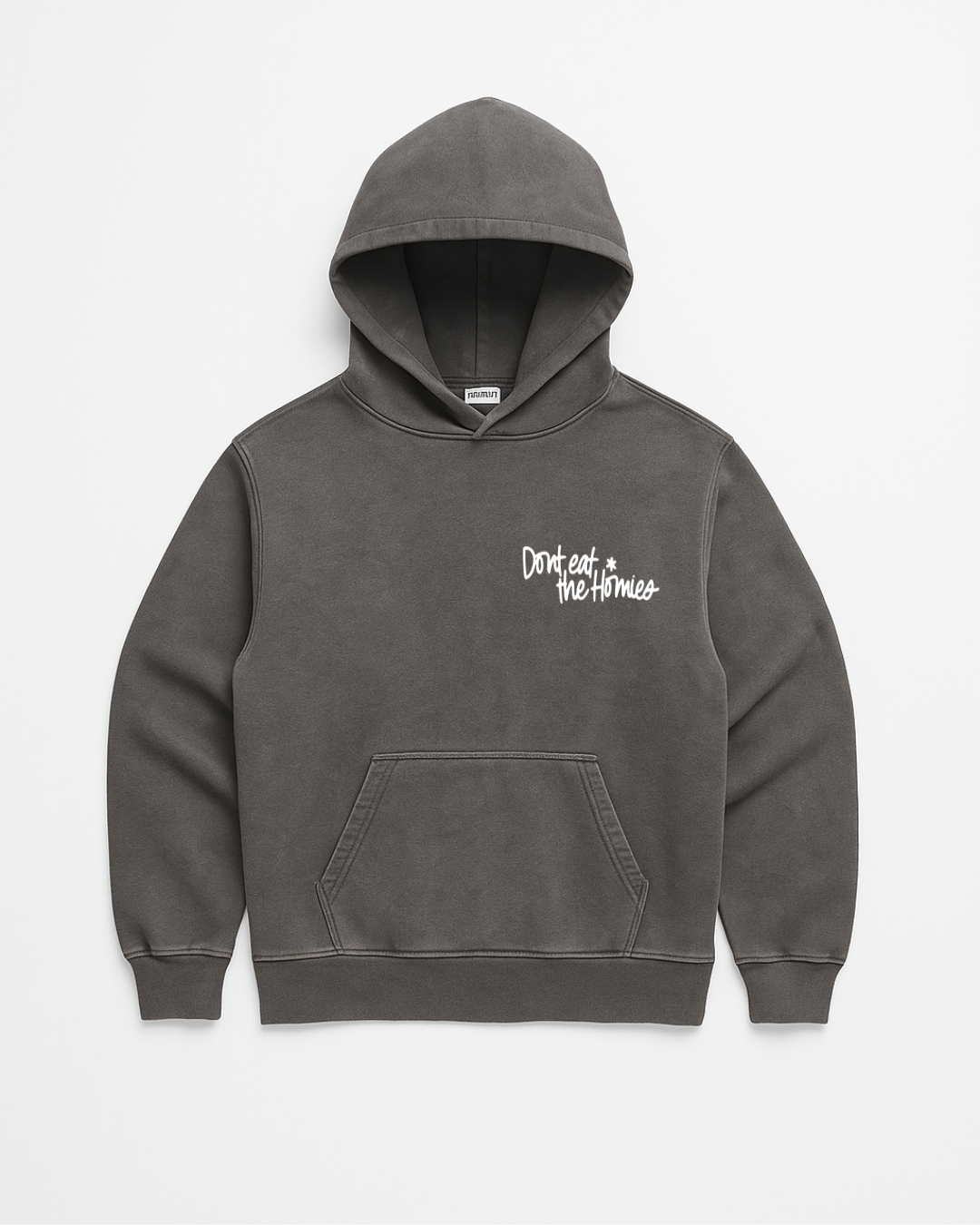 Our DETH Scribble Hoodie features a true to size fit and midweight feel for everyday wear - all year long. This hoodie features a new Dont Eat The Homies logo in a subtle puff print. The unisex fit & soft brushed fleece fabric is perfect for everyday wear and is designed with fashion, comfort, and the planet in mind. Made with 80% cotton and 20% recycled polyester.