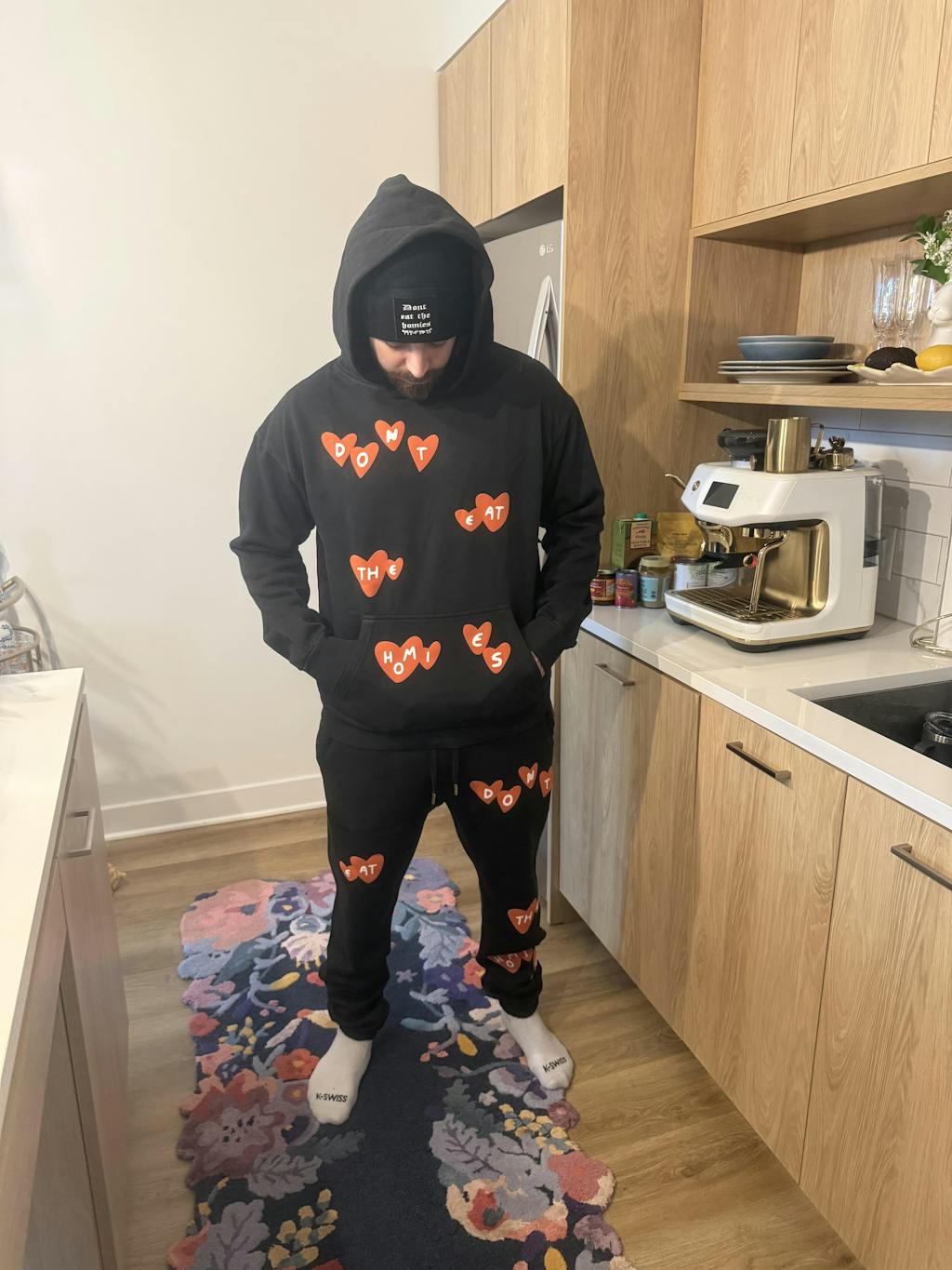 Our DETH is Love Hoodie features a true to size fit and midweight feel for everyday wear - all year long. This hoodie features a new take on a best-selling design with subtle puff print hearts with "Dont Eat The Homies" written inside. The unisex fit & soft brushed fleece fabric is perfect for everyday wear and is designed with fashion, comfort, and the planet in mind. Made with 80% cotton and 20% recycled polyester.